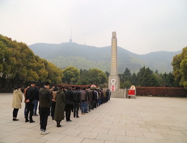 全部职员排队庄严走向反动义士记念碑前,由党员代表向反动义士敬献花圈。大师佩带党员徽章、着装整洁、神气庄严,向反动义士行默哀礼,并个人重温入党誓辞,观赏了义士事迹摆设馆。