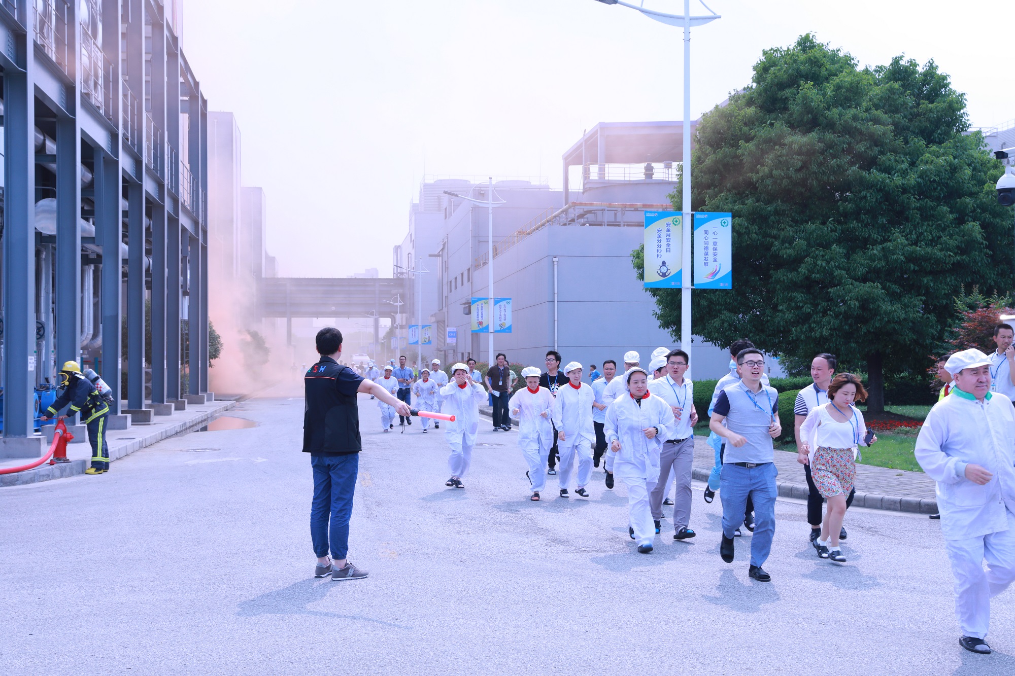 勾当进程中,高亚光副市长一行听取了海太半导体(无锡)无限公司的宁静出产使命报告请示及急预案练习训练先容,观赏了公司的应急批示室。跟着市当局周浩明副秘书长颁布发表练习训练起头,摹拟海太半导体公司封测厂区PKG-A/P地区丙酮遇静电突发火警,敏捷启动综合应急预案,展开现场告急措置,并构造近1200名员工应急分散,美满实现了应急措置使命。应急预案练习训练竣事后,团体党委布告、董事局主席蒋国雄慎重颁布发表2018年宁静出产月勾当正式启动,财产团体宁静出产月勾当盛大拉开帷幕。