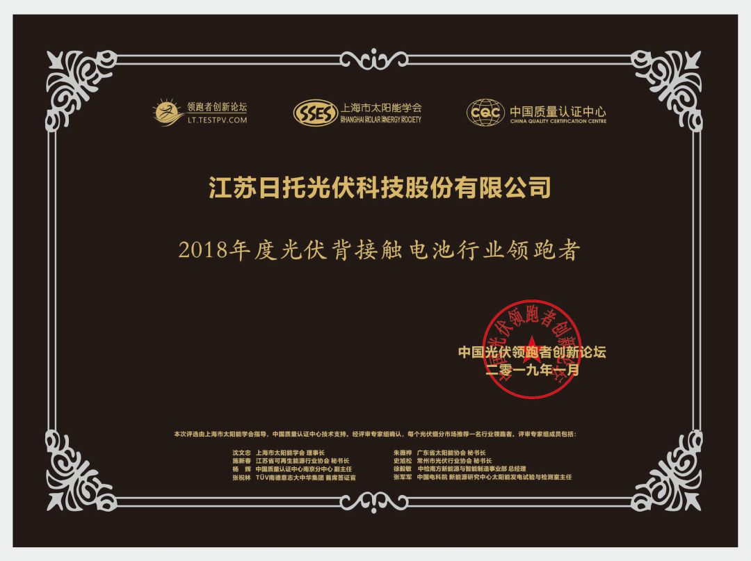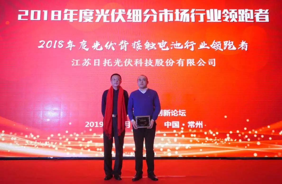 1月15日,第三届光伏领跑者立异服装论坛t.vhao.net年会暨环球光伏行业领跑者峰会在江苏常州昌大召开。作为高效组件范畴的领跑企业,日托光伏应邀列席,并折桂2018年度光伏背打仗电池行业领跑者奖。